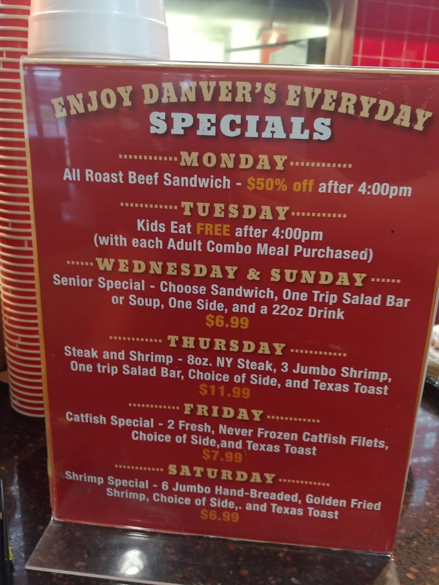 With friendly service and clean surroundings, Danver's Restaurant invites you to indulge in a memorable dining experience. Don't miss their baked potato and fresh cookies, made on request!